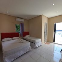 Nossos quartos possuem uma ótima decoração, frigobar, ar condicionado, camas de casal ou solteiro, banheiro com chuveiro elétrico, wifi e todo o conforto que você merece.